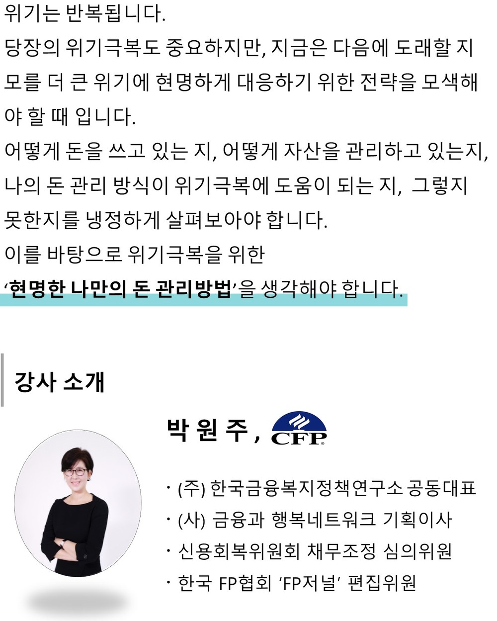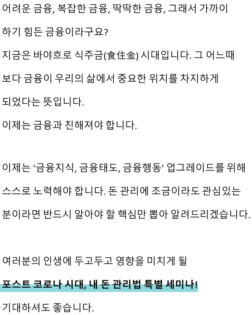 여러분의 인생에 두고두고 영향을 미치게 될 포스트코로나 시대, 내 돈 관리법 특별세미나!