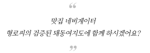 맛집 네비게이터, 형로씨의 검증된 돼동여지도에 함께 하시겠어요?