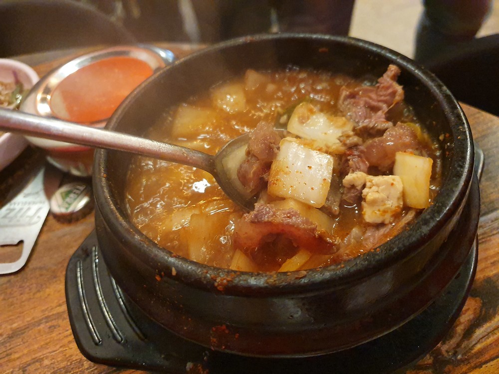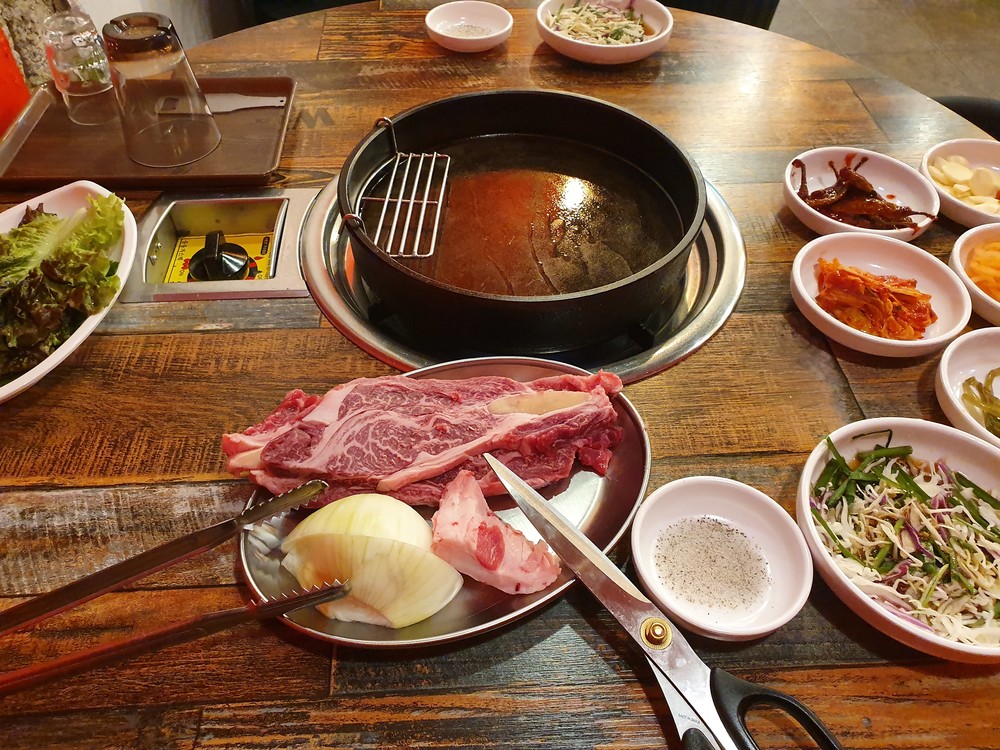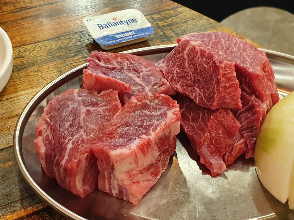 찾아내고야 말았다 일단 별5개 수여부터 먼저 진행..고기맛은 뭐 어딜가나 비슷하니 굳이 더 언급안해도 다들 알고있는 맛있는 소고기의 그맛..여기에 국밥마냥 푸짐한 건더기 된장찌개와 1인분의 양이 맞는지 의심스러운 볶음밥.. 치즈까지 올려주시네.."창고"와 "대도식당"에 버금가는 맛이라고 하자 사장님의 한마디가 명언이었음 `비싸고 맛있게하는건 누구나 다 하는거죠.` 정말 만족스러운 한끼식사. 모두가 감동할 이곳의 화룡점정은 가격이지.. 돼지고기를 먹고나온듯한 계산서에서 차분하려 노력하며 버텨오던 나는 무너지고 말았다 .