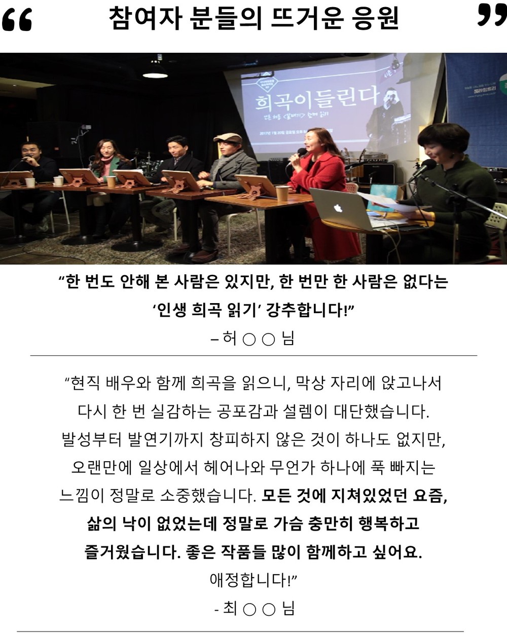 현직 배우들과 함께 인생 희곡이 될 작품을 낭독하면서