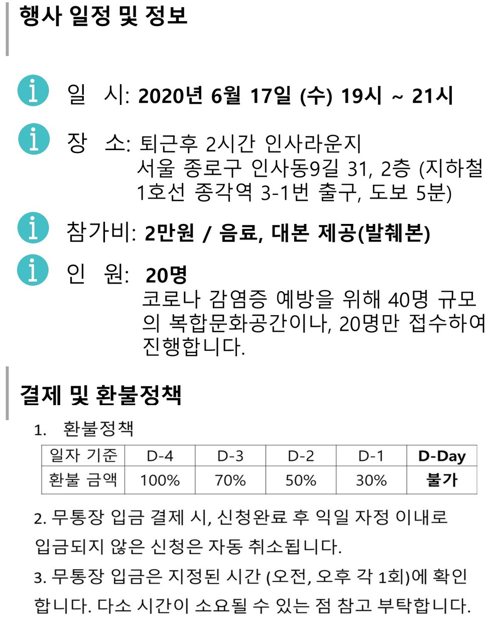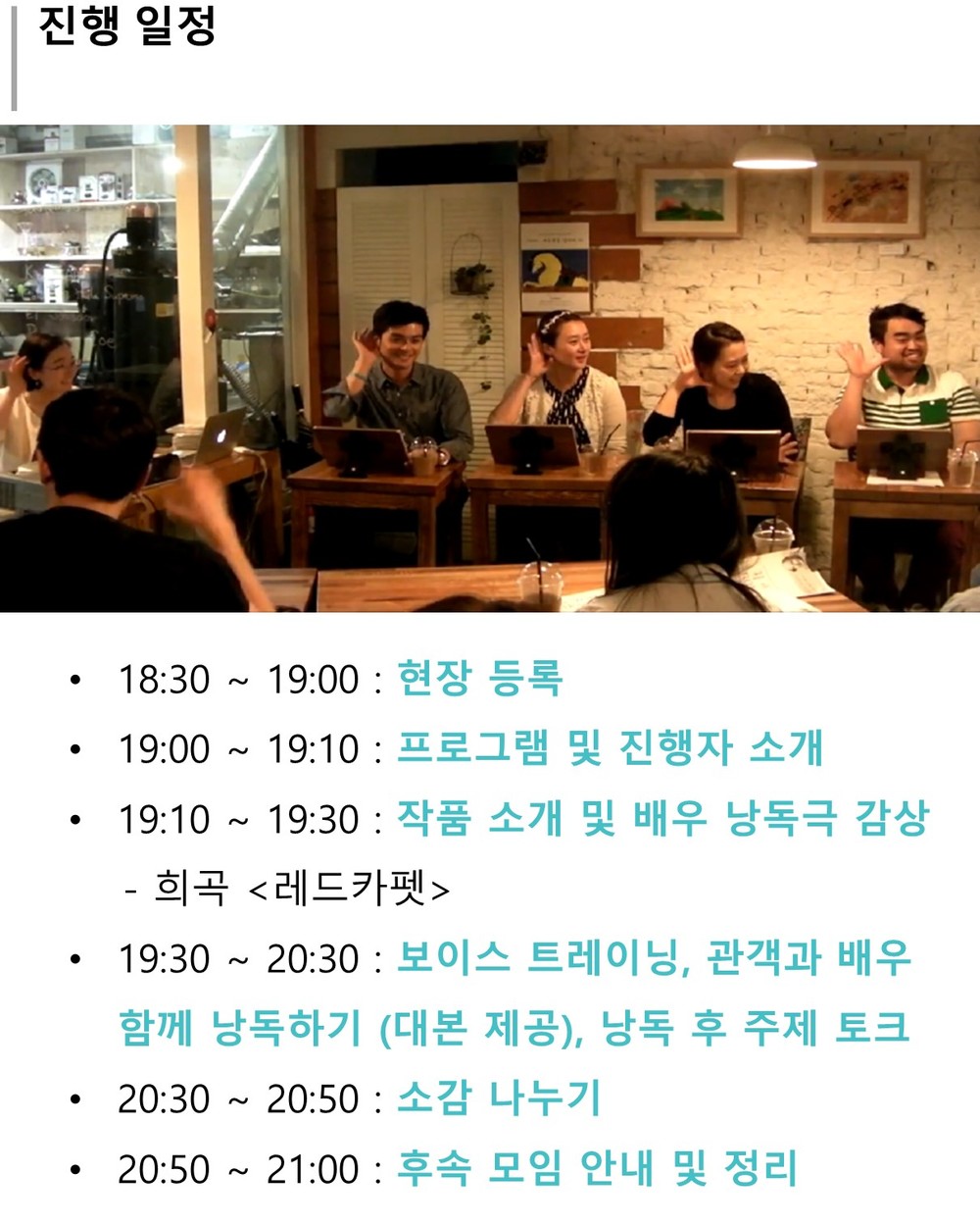 ㅇ 참가비 : 2만원 (음료, 대본집 제공)