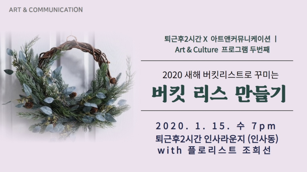 2020 1월의 Art&Cuture 프로그램 ‘January Wish’ 의 두 번째 세션입니다. 2020년 1월, 뭐든 잘해낼 나에게 바치는 리스(wreath) 플라워 클래스에 당신을 초대합니다.