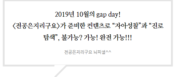 # 소셜클럽 "내 전공은 지리구요"의 10월의 답사 주제는 GAP DAY 입니다. 갭데이는 GAP YEAR의 아이디어를 빌려 왔습니다! 다만 시간을 YEAR에서 DAY로 줄였죠! 많이 들어봤을 GAP YEAR는 무슨 의미일까요?